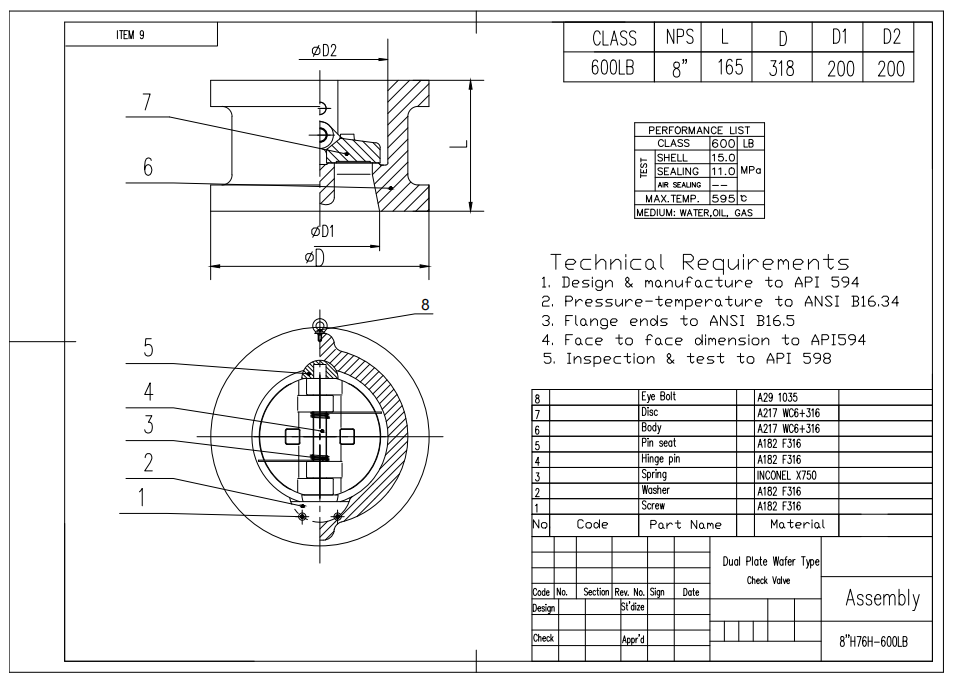 Dervosは、産業用アプリケーションを要求するために設計されたプレミアムウェーハチェックバルブを提供しています。 製造されています A217 WC6+316、8 "600lb ウェーハチェックバルブ デュアルプレートの構造特性があります。