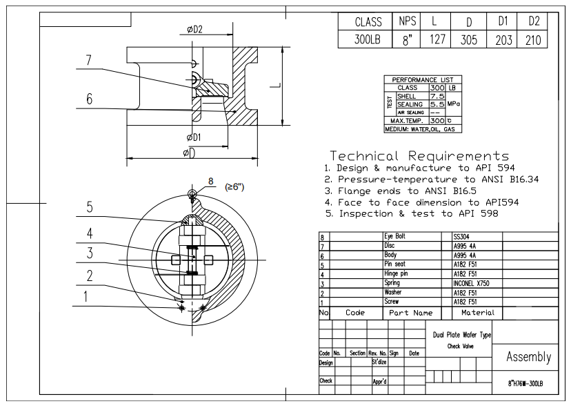 Dervosは、産業用アプリケーションを要求するために設計されたプレミアムウェーハチェックバルブを提供しています。 A995 4a、8 "300lb製 ウェーハチェックバルブ デュアルプレートの構造特性があります。