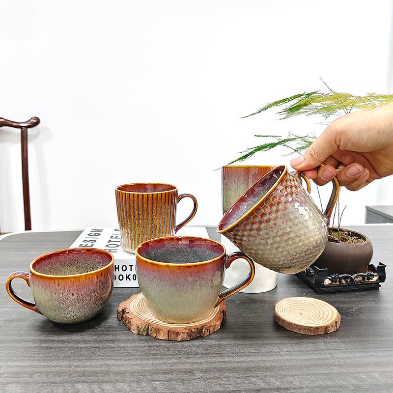 カスタムロゴコーヒーカップ手作りリアクティブグレーズセラミックマグカップ日本語スタイルの陶器ティーカップギフト